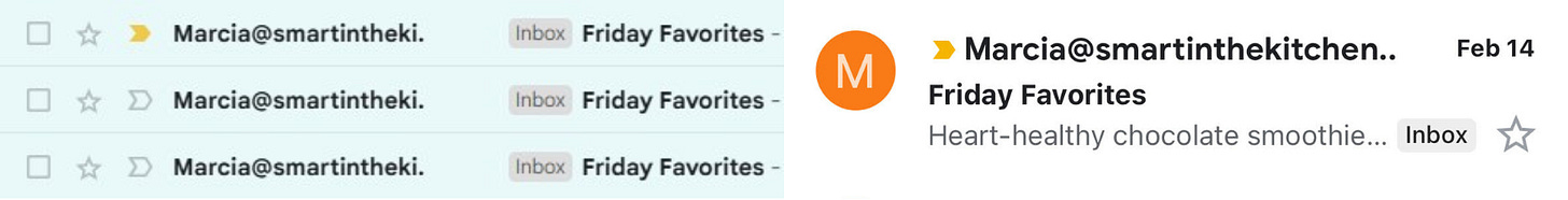 If you’re a subscriber, you’ll receive my Substack posts in your email inbox. To quickly find a newsletter, use your email inbox’s search bar—just look for emails from me, Smart In The Kitchen. If you need additional help, check out Substack FAQs for guidance on email delivery. Don’t forget to add me to your contacts to avoid missing updates or having them land in your spam folder! Here’s what the email will look like: