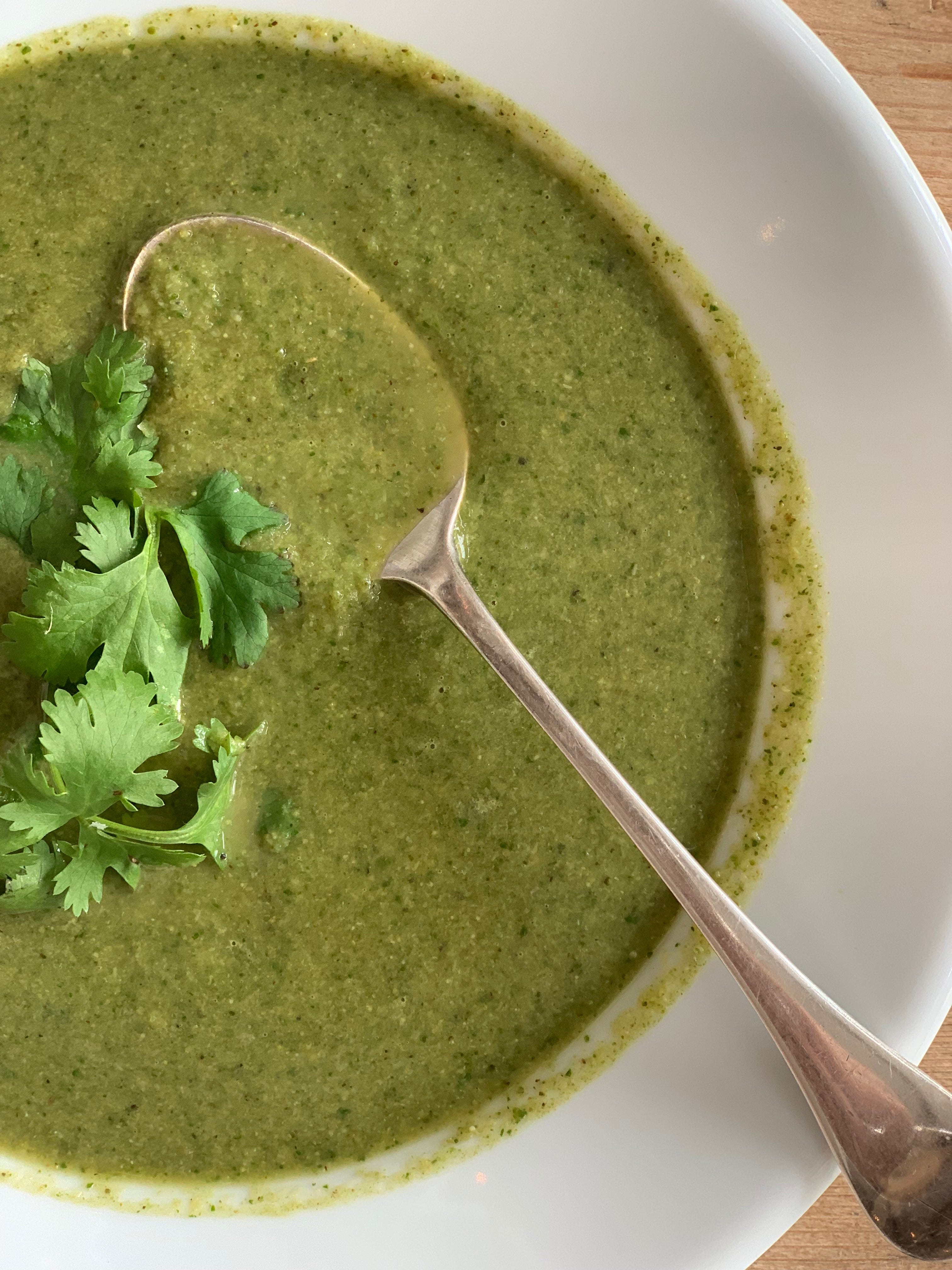 Green Detox Soup would make an easy meatless Monday dinner—or are you one of those people who don’t count soup as a viable dinner? Hope not! Top your bowl with a few drops of extra virgin olive oil, Maldon Sea Salt and cilantro leaves. And if you’re one of those people who can’t stand cilantro, just use parsley or chives.